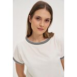 95% BAVLNA, 5% ELASTAN Krémové tričko, bez vzoru, z hladké bavlny. Má ozdobný výstřih zdobený ramínky, krátké rukávy a jednoduchý střih. Ideální na letní párty a setkání s přáteli. Skvěle se hodí k džínům, džínovým šortkám i elegantním sukním. Halenka je nutností v ženském šatníku.