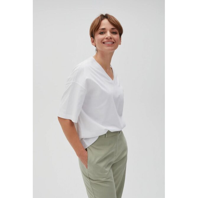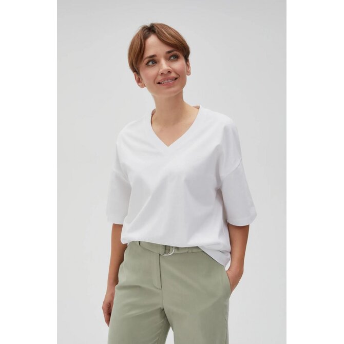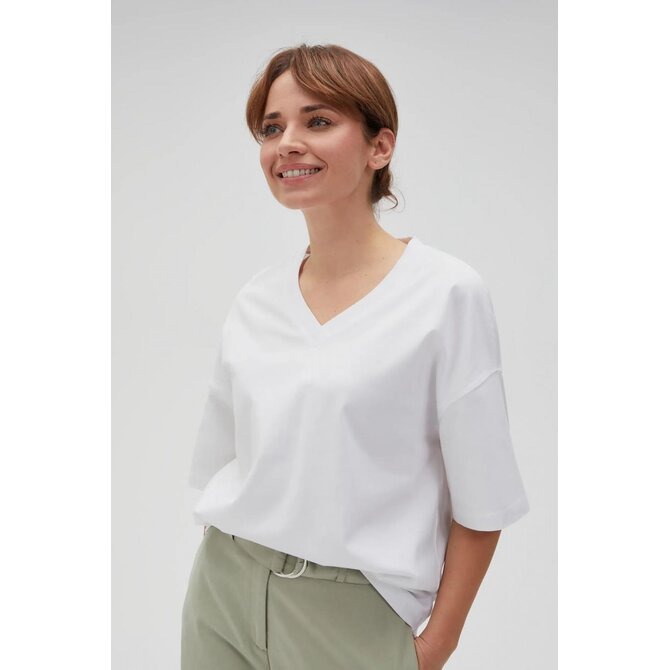 Volné tričko s výstřihem do V, bílé