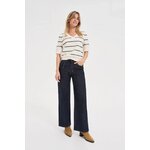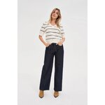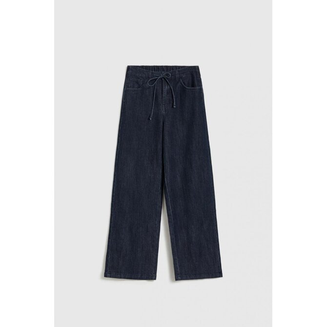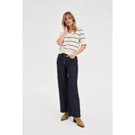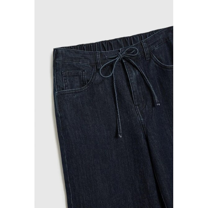 70% BAVLNA, 28% POLYESTER, 2% ELASTAN Tyto tmavě modré dámské džíny s širokými nohavicemi jsou základem šatníku. Hladká, nevzorovaná tkanina zdůrazňuje všestrannost džínů, zatímco elastický pas a stylové zavazování zajišťují pohodlí a perfektní střih. Dlouhé, široké nohavice dodávají střihu moderní nádech, decentní zip usnadňuje oblékání a použití přírodní bavlny zajišťuje celodenní pohodlí. Jsou ideální do práce, na schůzky s přáteli nebo na víkendové procházky po městě a perfektně se hodí k elegantní košili, klasickému tričku nebo svetru. Tyto džíny vypadají skvěle s kotníkovými botami, teniskami nebo teniskami a vytvářejí módní outfity pro různé příležitosti.