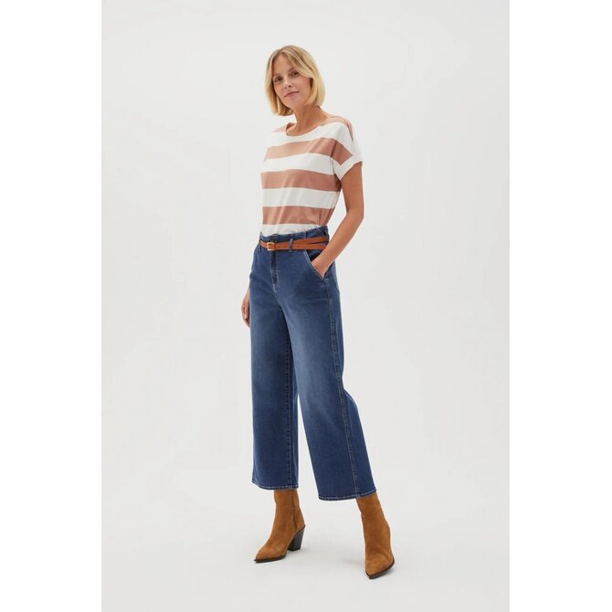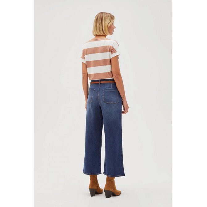 98% BAVLNA, 2% ELASTAN Dámské modré džíny, bez vzoru. Vyrobeno z vysoce kvalitní bavlny, která zajišťuje pohodlí při nošení. Mají pásek a módní široký design nohavic. Díky 7/8 délce nohavic vypadají skvěle jak s botami na vysokém podpatku, tak se sportovními teniskami. Zip usnadňuje rychlé nazouvání. Hodí se pro mnoho příležitostí, od každodenních procházek až po setkání s přáteli. Skvěle se hodí k bílé košili a elegantnímu trenčkotu, stejně jako k volnému svetru a teniskám. Produkt, který jistě podtrhne vaši individualitu a styl.