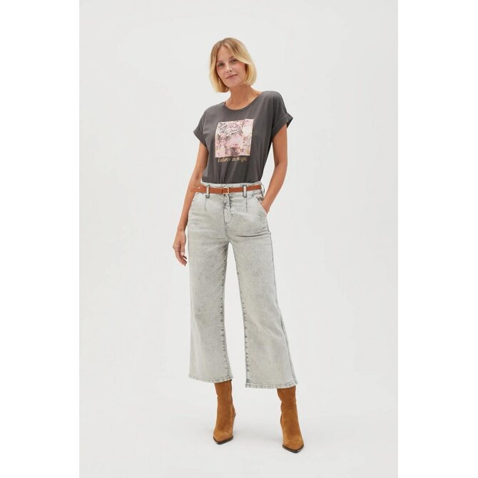 98% BAVLNA, 2% ELASTAN Dámské šedé džíny jsou perfektní volbou pro ženy, které oceňují pohodlí a styl. Vyrobeny z vysoce kvalitní bavlny, zajišťují komfort nošení po celý den. Ozdobný pásek a klasický široký střih nohavic dodávají charakter a díky nim vypadají džíny elegantně. Díky 7/8 délce a střednímu pasu jsou vhodné pro mnoho stylů. Zip navíc zajišťuje snadné a rychlé zapínání. Skvěle se budou hodit jak k elegantní košili, tak k lehkému svetru nebo basic tričku.