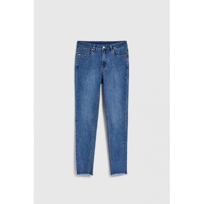 71 % BAVLNA, 27 % POLYESTER, 2 % ELASTAN Dámské modré džíny jsou absolutní nutností ve vašem šatníku! Vyrobeny z vysoce kvalitní bavlny, hladké a bez vzoru, zajišťují pohodlí a komfort nošení. Charakter jim dodávají roztřepené nohy a klasický trubkový střih. Mají zip, díky kterému se snadněji oblékají a svlékají. Tyto džíny se budou hodit k mnoha různým příležitostem – jak na každodenní nošení, tak na setkání s přáteli nebo večerní výlety. Skvěle budou ladit se sportovní obuví, vysokými podpatky, ale i s teniskami nebo sandály. V kombinaci s basic tričkem nebo elegantní halenkou vytvoří módní outfit, který bude vždy na vrcholu. Dámské džíny – klasika s moderním šmrncem!