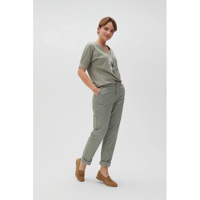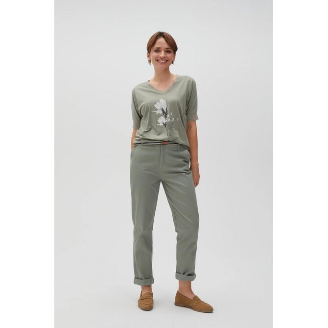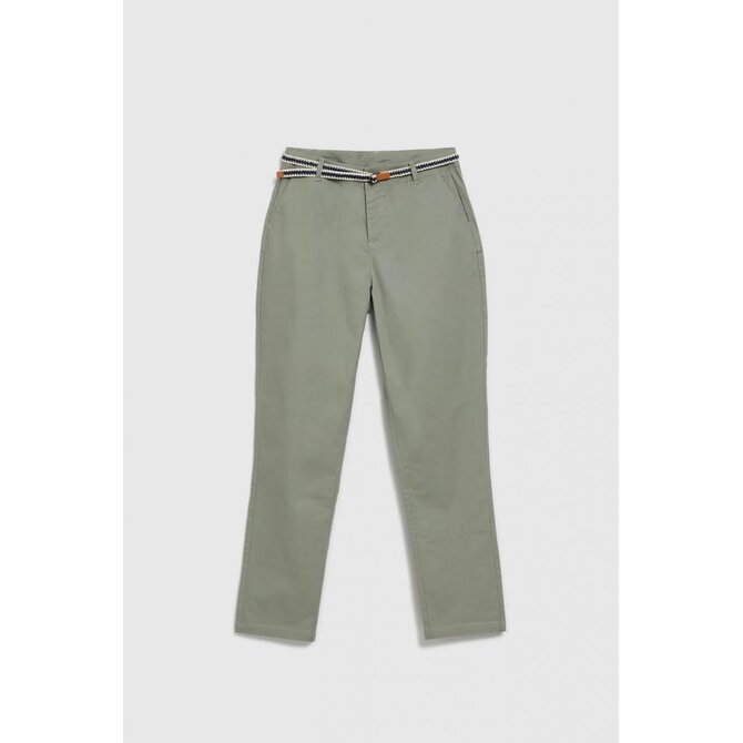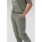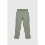 98% BAVLNA, 2% ELASTAN Dámské kalhoty olivové barvy jsou ideální nabídkou pro ženy, které si cení pohodlí a stylu. Jsou vyrobeny z vysoce kvalitní bavlny, hladké a jednoduché, poskytují pohodlí po celý den. Navíc mají praktické kapsy, ozdobný pásek, zip a knoflíky, díky kterým vypadají elegantně a originálně. Tyto kalhoty budou skvělou volbou pro mnoho různých příležitostí, jak pro každodenní, tak pro formálnější příležitosti. Skvěle se budou hodit jak k tričku a teniskám, tak k elegantní halence a vysokých podpatcích. Díky svému univerzálnímu designu budou základem pro mnoho různých stylů.