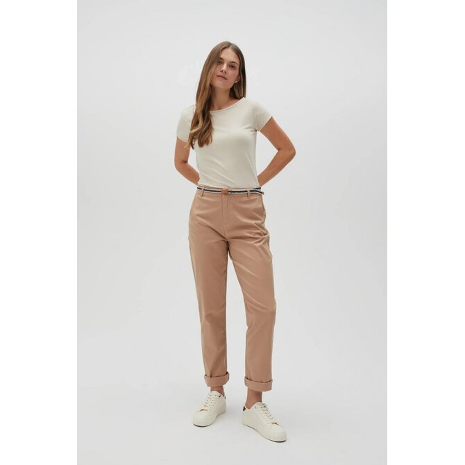 98% BAVLNA, 2% ELASTAN Hnědé dámské kalhoty bez vzoru jsou perfektní volbou pro ženy, které si cení pohodlí a stylu. Jsou vyrobeny z bavlny, poskytují příjemné nošení a skvěle padnou. Navíc mají praktické kapsy, ozdobný pásek a zip s knoflíky. Rovné dlouhé kalhoty se středním pasem budou dokonalým doplňkem šatníku každé ženy. Tyto kalhoty jsou ideální pro mnoho příležitostí, jak na každý den, tak do práce i na setkání s přáteli. Hodí se k mnoha různým šatníkům a lze je kombinovat s elegantní košilí nebo volným svetrem či halenkou. Díky své univerzální hnědé barvě budou vypadat skvěle jak s botami na podpatku, tak s teniskami.