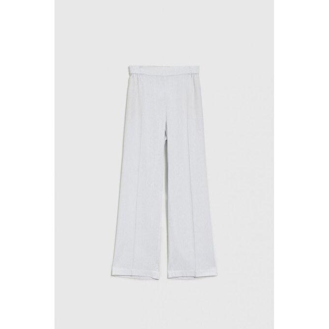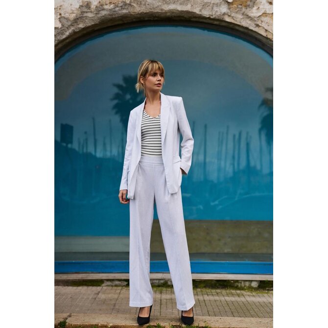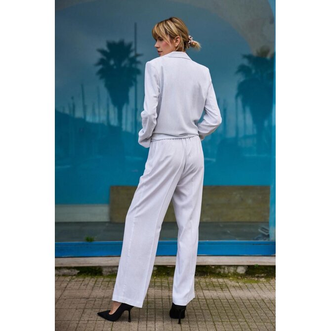70% VISKÓZA, 30% LEN Univerzální dámské kalhoty v bílé barvě jsou perfektní volbou pro ženy, které si cení pohodlí a stylu. Vyrobeno z lehké a vzdušné viskózové tkaniny, která zaručuje pohodlí po celý den. Tento model má praktické kapsy, elastický pas a široké, lemované nohavice. Jejich vysoký pas zdůrazňuje výhody siluety a dodává jí eleganci. Tyto kalhoty jsou ideální pro mnoho příležitostí, jak pro každodenní nošení, tak i pro formálnější vycházky. Perfektně se hodí k lehkým košilím, topům i elegantním sakům. Díky svému univerzálnímu designu se stanou nenahraditelným prvkem vašeho šatníku a dodají charakter každému stylingu.