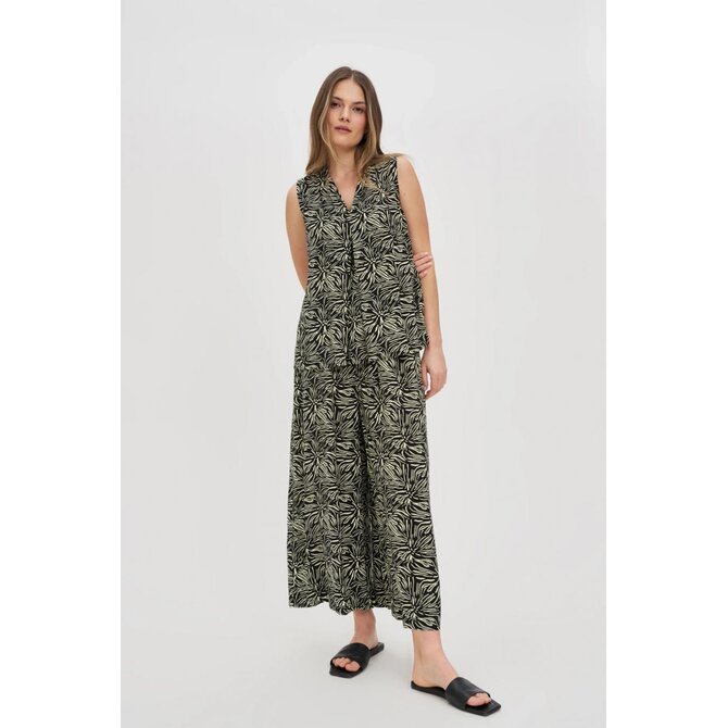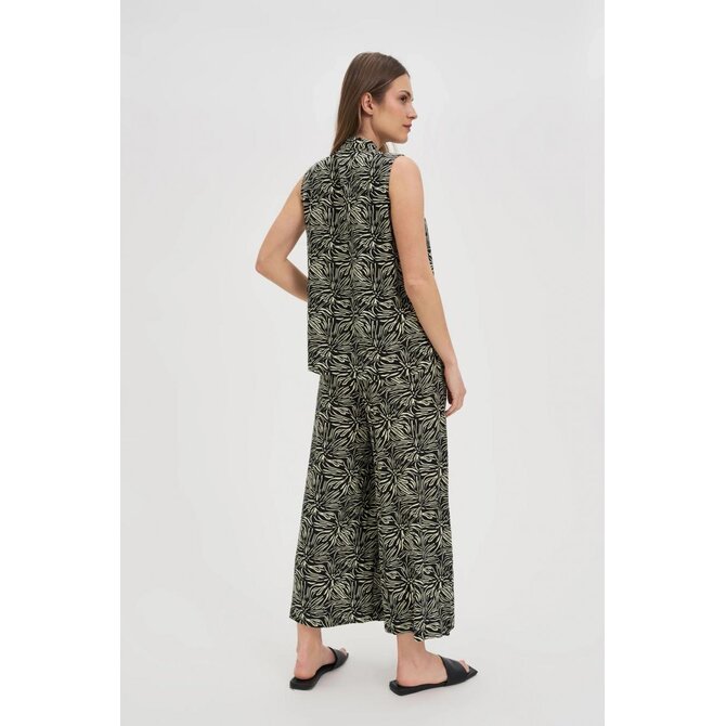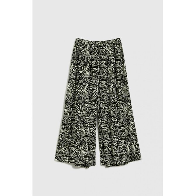 100% VISKÓZA Černé culottes 7/8 délky přitahují pozornost moderním střihem se širokými nohavicemi a vysokým pasem, zdůrazňují postavu a poskytují pohodlí při každodenním nošení. Elastická guma v pase umožňuje perfektní padnutí a praktické kapsy dodávají funkčnost a styl. Model je ideální na procházky po městě nebo víkendové výlety. Perfektně se hodí k elegantní košili a přiléhavému topu. Skvělou dvojici vytvoří pohodlné tenisky nebo sandály, které vám umožní vytvořit módní styly pro různé příležitosti.