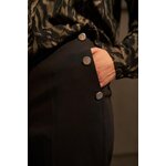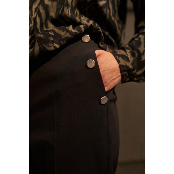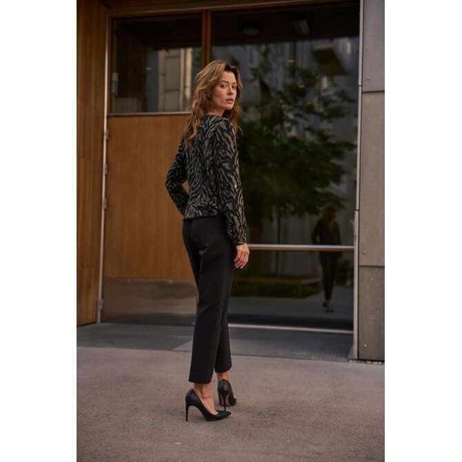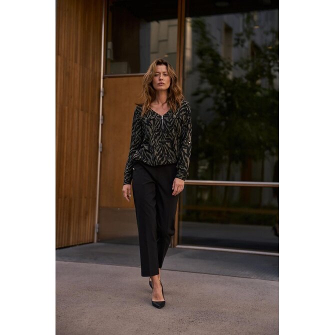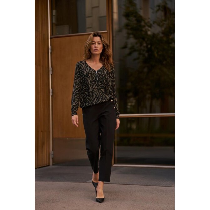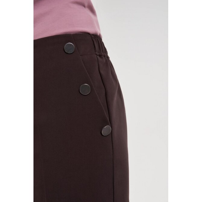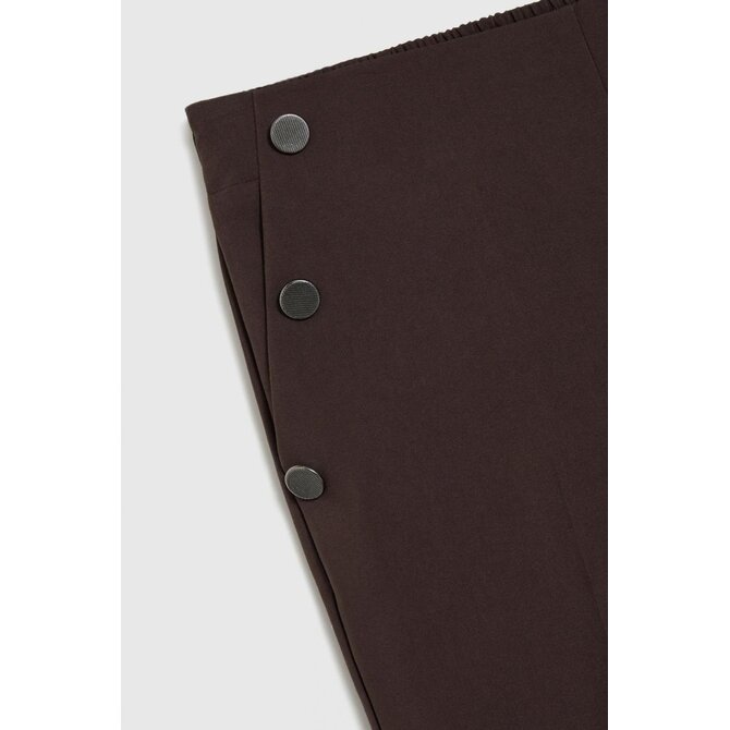 56 % BAVLNA, 42 % POLYESTER, 2 % ELASTAN Tyto černé cigaretové kalhoty kombinují nadčasovou eleganci s pohodlným střihem. Hladká, nevzorovaná látka zdůrazňuje všestrannost kalhot, zatímco ozdobné knoflíky dodávají charakter a jemnou originalitu. Pohodlný elastický pas zajišťuje celodenní pohodlí a praktické kapsy umožňují snadné uložení drobností. Mačkané kalhoty opticky zeštíhlují postavu, zatímco délka ke kotníkům vytváří štíhlejší vzhled. Měkká směs bavlny a strečové látky zajišťuje volnost pohybu a odolnost. Tyto olivově hnědé cigaretové kalhoty jsou ideální pro obchodní schůzky, do kanceláře, ale i pro elegantní výlety a rodinné oslavy. Skvěle se hodí k bílé košili, klasickému saku, lehkému svetru nebo módnímu topu. Perfektně se hodí k podpatkům i teniskám, takže si s nimi můžete vytvořit řadu stylových outfitů pro různé příležitosti.