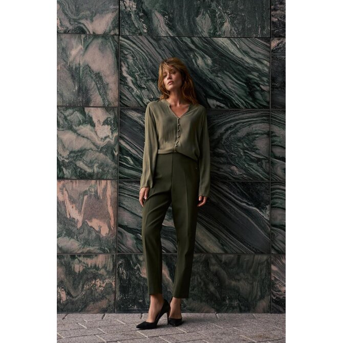 Tmavě olivové cigaretové kalhoty