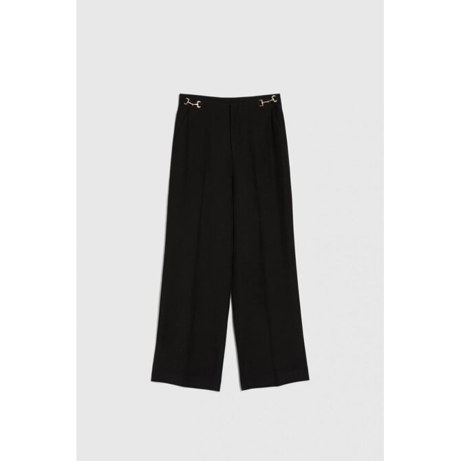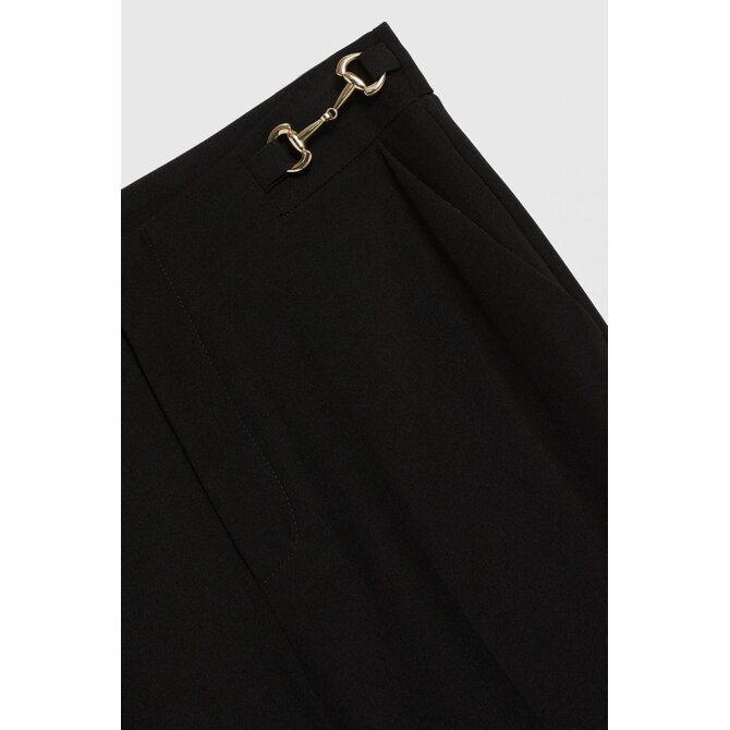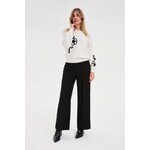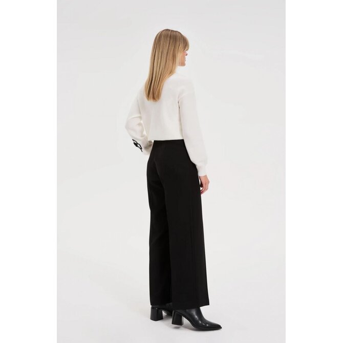 95% POLYESTER, 5% ELASTAN Tyto černé dámské kalhoty s širokými nohavicemi jsou synonymem pro každodenní eleganci a pohodlí. Hladká, nevzorovaná látka vypadá neuvěřitelně stylově, zatímco ozdobné detaily decentně zdůrazňují jedinečný charakter výrobku. Vysoký pas dokonale tvaruje postavu, zdůrazňuje pas a zajišťuje celodenní pohodlí. Klasické sklady a praktické kapsy dělají kalhoty funkčními i módními zároveň. Odolný polyesterový materiál zaručuje snadnou údržbu a bezchybný vzhled i při intenzivním používání. Ideální volba pro formální schůzky, práci nebo rodinné oslavy. Tyto kalhoty se krásně hodí ke klasické košili, elegantní halence nebo přiléhavému saku. Perfektně se hodí k jehlovým podpatkům, mokasínům nebo módním teniskám a vytvářejí tak moderní a nadčasový vzhled pro každou příležitost.
