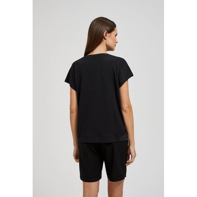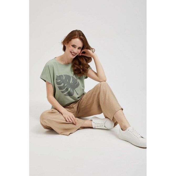 95% BAVLNA 5% ELASTAN Stylové tričko je perfektní volbou pro ženy, které oceňují pohodlí a styl. Vyrobeno z vysoce kvalitní bavlny, zaručuje pohodlí při nošení. Hladký materiál a jemný potisk dodávají halence eleganci. Stahovací šňůrka ve spodní části a volný střih zajišťují volnost pohybu. Kulatý výstřih a spadlá ramena dodávají halence lehkost a ženský půvab. Tričko se skvěle hodí na každodenní nošení, do práce, na procházku nebo setkání s přáteli. Skvěle se hodí k džínám, sukni, šortkám a elegantním kalhotám. Díky svému univerzálnímu střihu a klasické barvě bude skvělým doplňkem každého dámského šatníku.