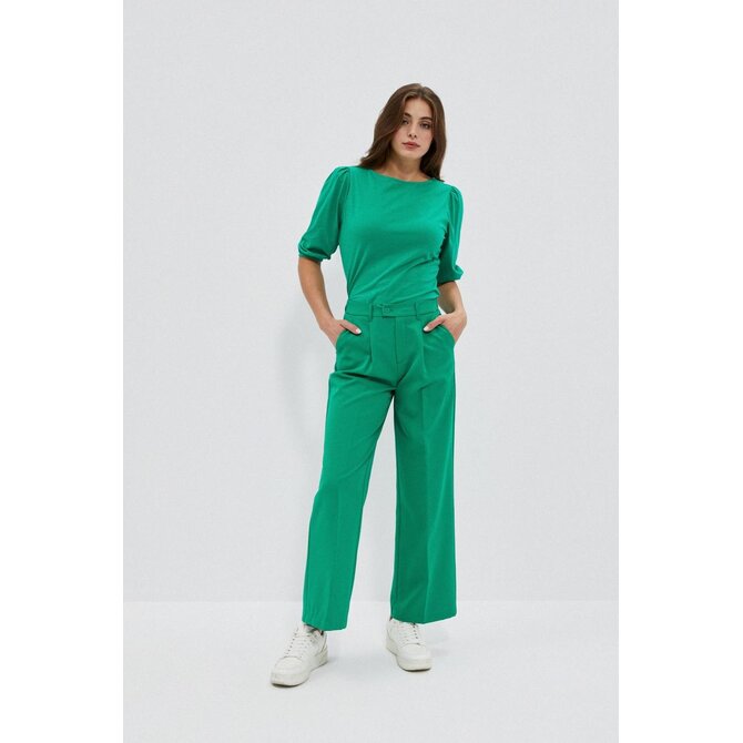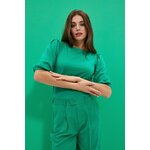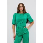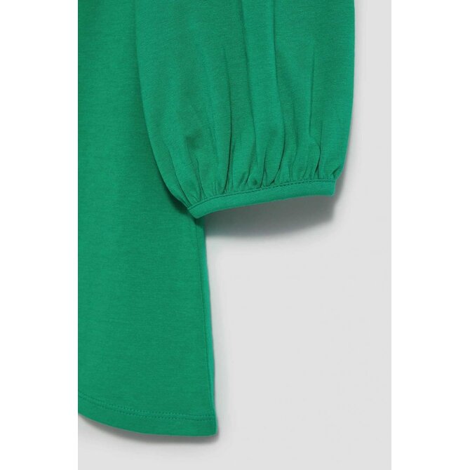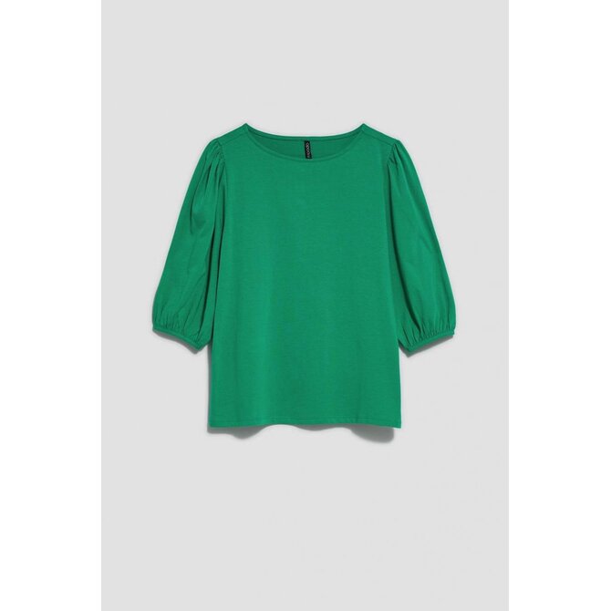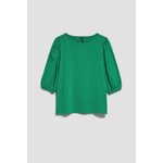 Bavlna, univerzální halenka rovného střihu. Lodní výstřih. Nafouklé, ozdobné rukávy po lokty, zakončené malým žebrováním. Vyrobeno z materiálu příjemného na tělo.