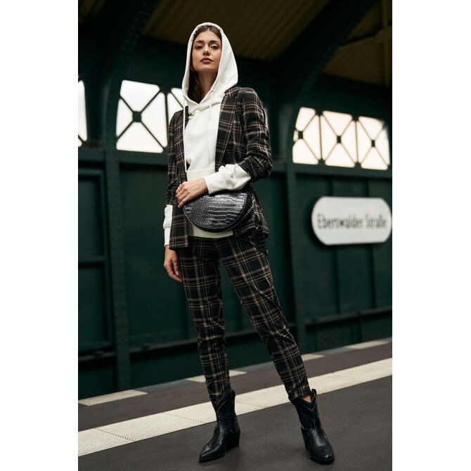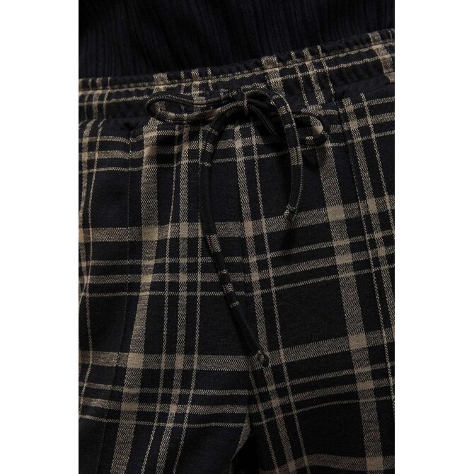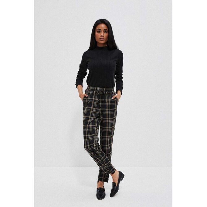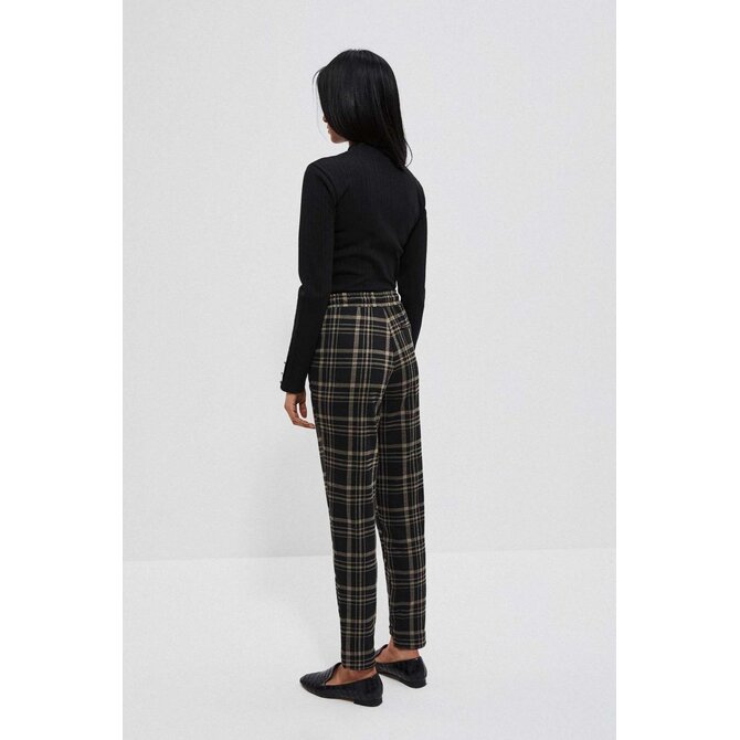 Černé kalhoty se světle šedým kostkovaným vzorem.