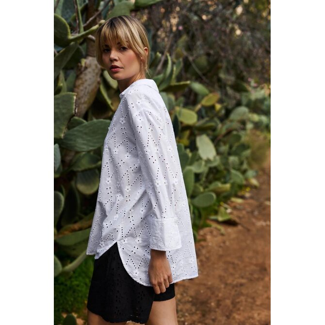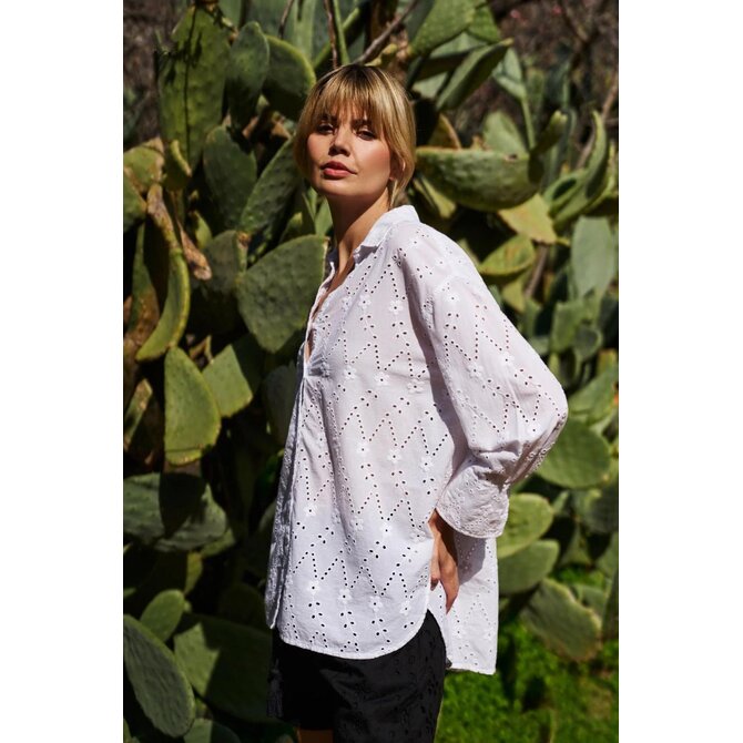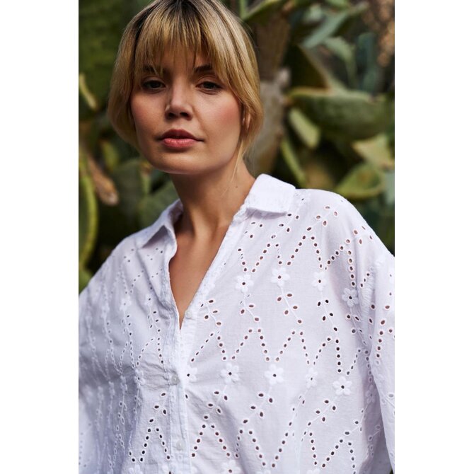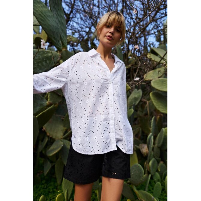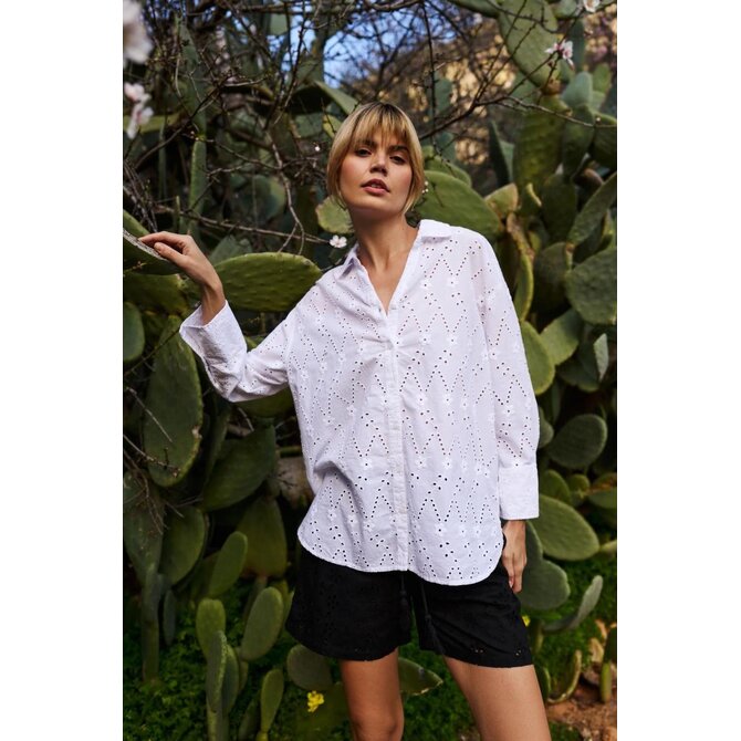 100% BAVLNA Bílá dámská košile z bavlny. Model s dlouhými rukávy a manžetami na knoflíky. Zapínání na knoflíky, výstřih s límečkem. Ideální pro mnoho příležitostí, jak pro každodenní, tak pro obchodní jednání. Skvěle se bude hodit jak v ležérních stylech, tak v elegantnějších sestavách.