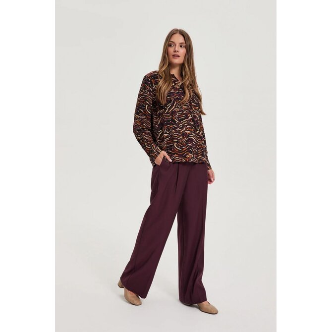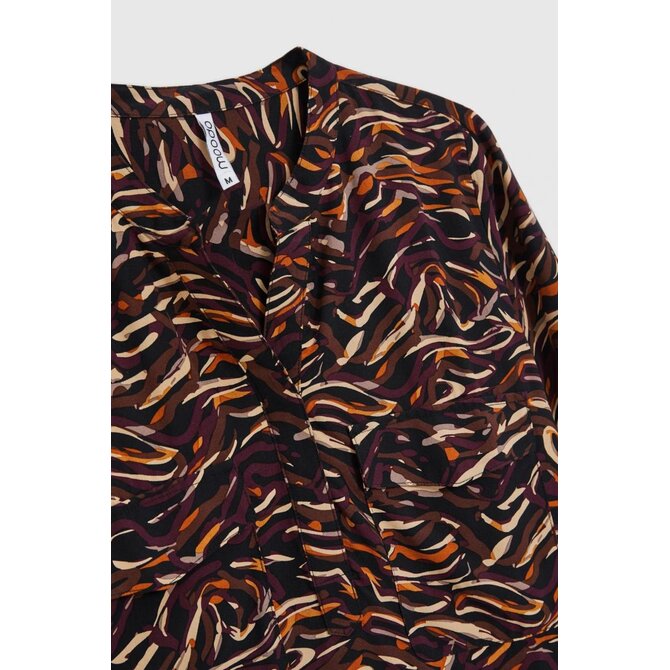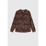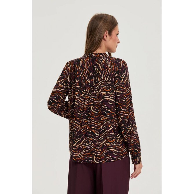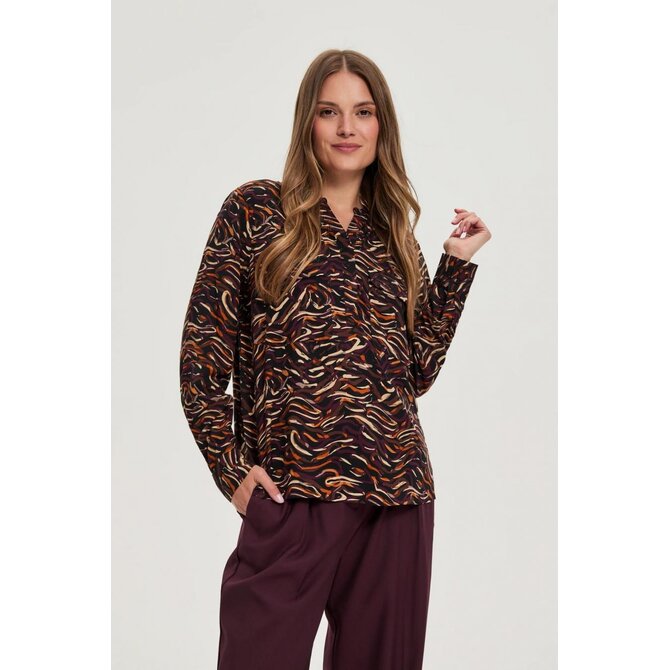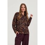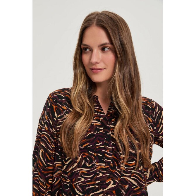 100% VISKÓZA. Tato černá dámská košile s unikátním vzorem zaujme svou originalitou. Dlouhé rukávy poskytují pohodlí v chladnějších dnech, zatímco výstřih do V decentně zvýrazňuje krk. Lehká, vzdušná tkanina s přídavkem viskózy zaručuje pohodlí a příjemný pocit na pokožce. Ideální volba pro obchodní schůzky, rodinné oslavy nebo večery v restauraci. Tato košile se perfektně hodí ke klasickým látkovým kalhotám, pouzdrové sukni nebo slim fit džínům. Je to perfektní způsob, jak vytvořit elegantní vzhled s nádechem sofistikovanosti.