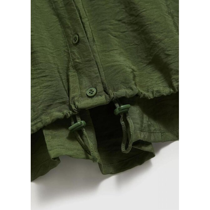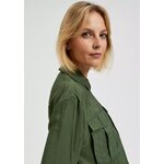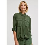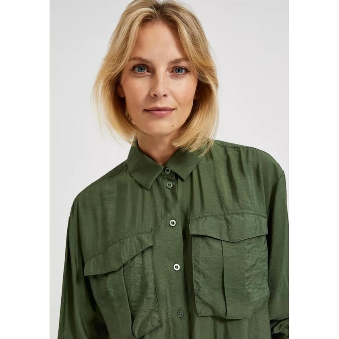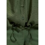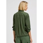 88% VISKÓZA, 12% POLYAMID Zelená khaki dámská košile je absolutní nutností v šatníku každé módní ženy. Bez vzoru, hladká a z příjemné viskózy, zaručí nejen pohodlí, ale i stylový vzhled pro každou příležitost. Košile díky volnému oversize střihu padne na postavu mimořádně působivě a podtrhuje její přirozenou krásu. Dlouhé rukávy s manžetami a elegantní volánky na ramenou dodávají tomuto modelu jedinečné kouzlo. Díky zapínání na knoflík a zavazování v pase je tento produkt mimořádně funkční. Hodí se pro mnoho různých příležitostí, dá se nosit jak každý den do práce, tak na zvláštní příležitosti nebo rande. Skvěle se hodí ke kalhotám, sukni, džínům i šortkám. Je dokonalým doplňkem jakéhokoli stylingového trendu, dodává eleganci a sofistikovanost.