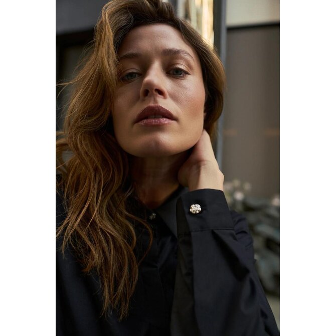 80% POLYESTER, 17% BAVLNA, 3% ELASTAN Tato černá dámská košile s originálním designem je ideální pro ty, kteří si cení jedinečného stylu a elegance. Dekorativní kamínky dodávají košili osobitý nádech, zatímco klasické skladání a zapínání na knoflíky zdůrazňují nadčasový charakter košile. Dlouhé rukávy a límec dokonale splňují současné trendy dámské módy. Lehká polyesterová tkanina zajišťuje pohodlí a snadnou údržbu. Tato košile je ideální pro formální schůzky, práci nebo večerní vycházku. Perfektně se hodí k látkovým kalhotám, pouzdrové sukni nebo klasickým džínům a vytváří tak všestranný vzhled. Je perfektní k saku nebo pod svetr a umožňuje vám vytvořit moderní obchodní nebo ležérní vzhled.