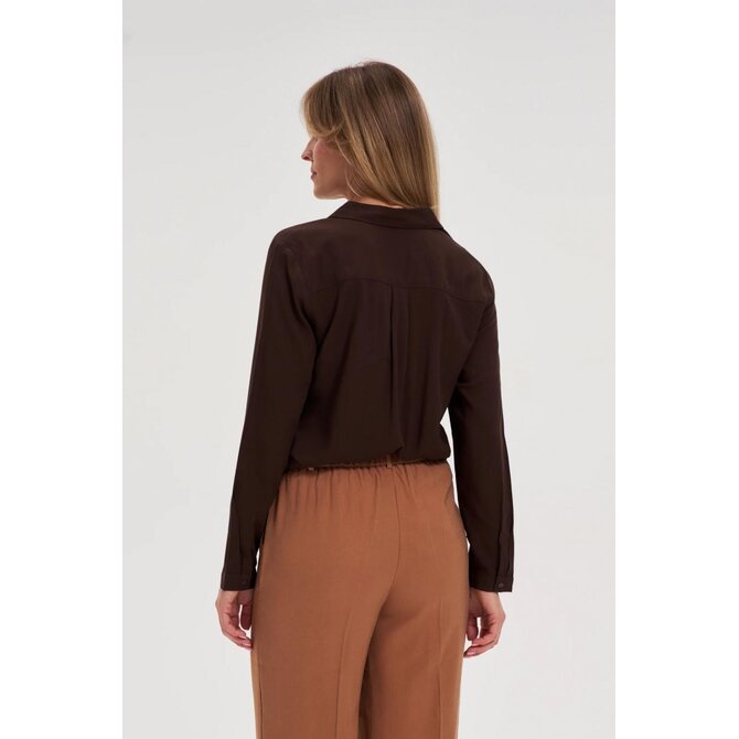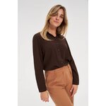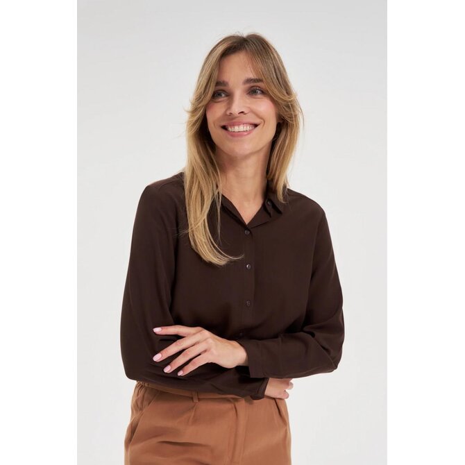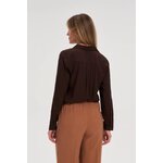100% VISKÓZA Tato hnědá jednobarevná dámská košile v sobě spojuje eleganci a minimalismus. Hladká tkanina a klasický límec dodávají košili stylový nádech, zatímco zapínání na knoflíky zdůrazňuje všestrannost produktu. Dlouhé rukávy ji činí ideální pro chladnější dny. Přírodní viskóza zajišťuje prodyšnost a celodenní pohodlí. Ideální pro obchodní schůzky, do kanceláře i na neformální výlety. Perfektně se hodí k elegantním kalhotám, pouzdrové sukni nebo džínům. Skvělá volba pro vytvoření nadčasového stylu vhodného pro mnoho příležitostí.