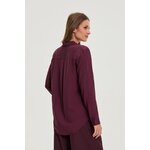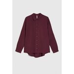 Tato dámská vínová košile ze 100% viskózy zaujme svou elegancí a nadčasovou jednoduchostí. Hladká, jednobarevná tkanina, jemně splývající se siluetou, zdůrazňuje stylový charakter střihu. Klasický límec a pečlivě všité knoflíky dodávají celkovému vzhledu sofistikovanost, zatímco dlouhé rukávy ji činí ideální pro každé roční období. Lehká a vzdušná viskóza zajišťuje celodenní pohodlí a zároveň zachovává estetickou přitažlivost materiálu. Je perfektní volbou pro formální schůzky, práci nebo rodinná setkání a skvěle se hodí k látkovým kalhotám, klasické pouzdrové sukni nebo elegantním džínům. Tato jednobarevná vínová košile je nezbytnou součástí šatníku každé ženy, která si cení stylu a pohodlí.