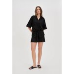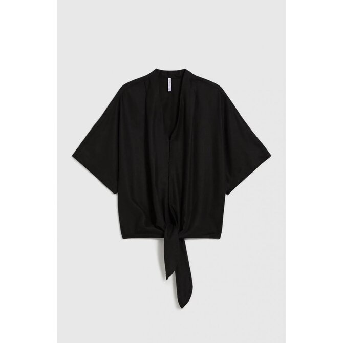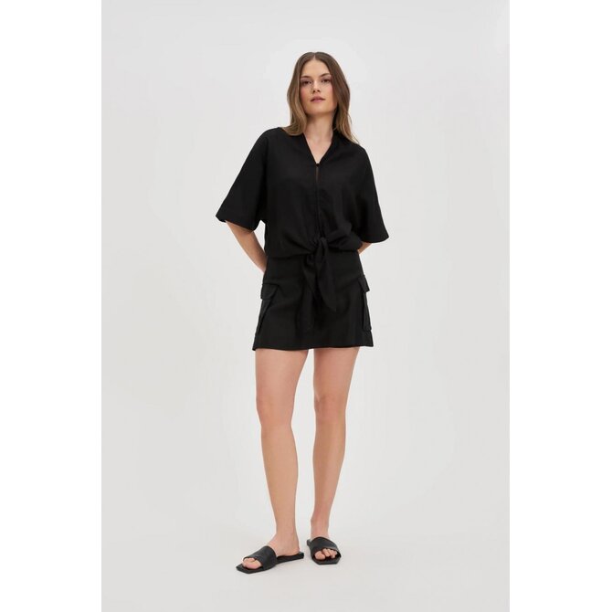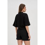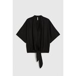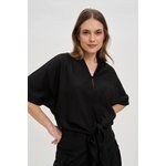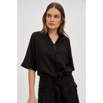 75% VISKÓZA, 25% LEN Dámská košile v černé barvě je perfektní volbou pro každou stylovou ženu. Vyrobeno z lehké a příjemné viskózy, která zaručuje pohodlné nošení. Nadměrný model s vázáním vpředu, knoflíky a výstřihem do V vypadá extrémně módně. Krátké rukávy a rozšířený střih dodávají lehkost a volnost pohybu. Tato elegantní košile je ideální na večerní vycházky, schůzky s přáteli nebo i do kanceláře. Perfektně se hodí k přiléhavým látkovým kalhotám nebo džínům, ale i ke kožené sukni. Tohle je nutnost v každé dámské sbírce!