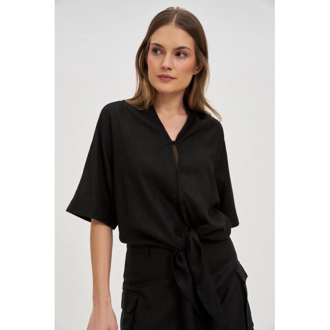 Černá košile z viskózy a lnu
