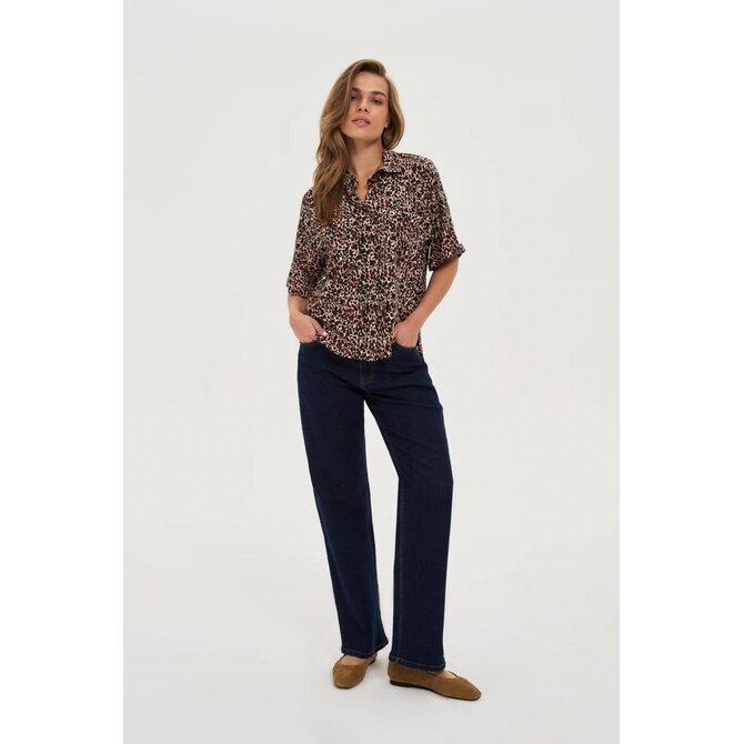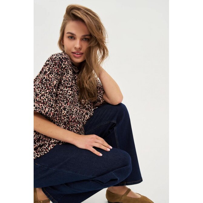 Viskózová košile s leopardím potiskem, černá