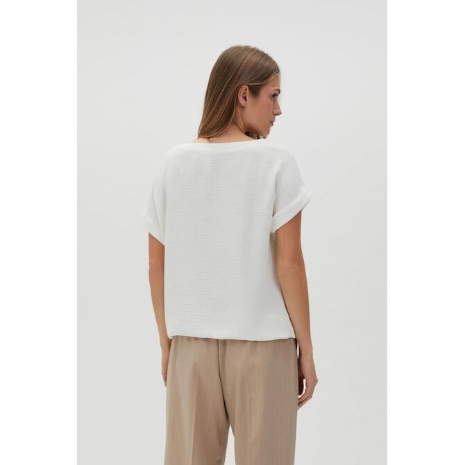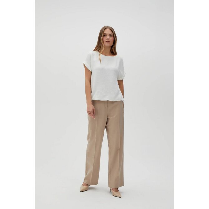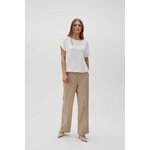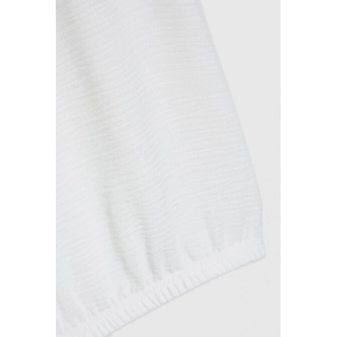 100% POLYESTER Dámská košile krémové barvy, bez vzoru, hladká. Krátké ohrnuté rukávy dodávají celému kompletu originalitu a lehkost. Díky výstřihu košile bez límečku vypadá elegantně a moderně. Ideální pro nošení při formálnějších příležitostech, jako jsou obchodní jednání nebo formální večeře. Skvěle se bude hodit jak v kombinaci s elegantními sukněmi, tak v každodenním stylu s džínami nebo látkovými kalhotami. Dodejte svému šatníku šmrnc s touto košilí bez rukávů.