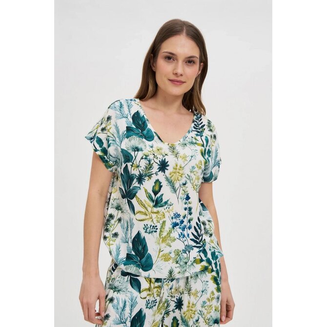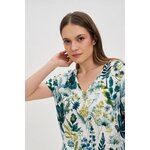 Dámská košile ecru ze 100% viskózy se vyznačuje moderním oversize střihem, který poskytuje pohodlí a volnost pohybu po celý den. Model s krátkými rukávy a výstřihem do V dokonale zdůrazní krk a dodá každému stylu decentní eleganci. Ideální na letní schůzky, do práce nebo na večerní vycházky. Skvěle se hodí jak ke klasickým látkovým kalhotám, tak i k přiléhavé midi sukni nebo džínům s vysokým pasem. Perfektní volba pro vytvoření ležérního nebo elegantního stylu se sakem a minimalistickými šperky.