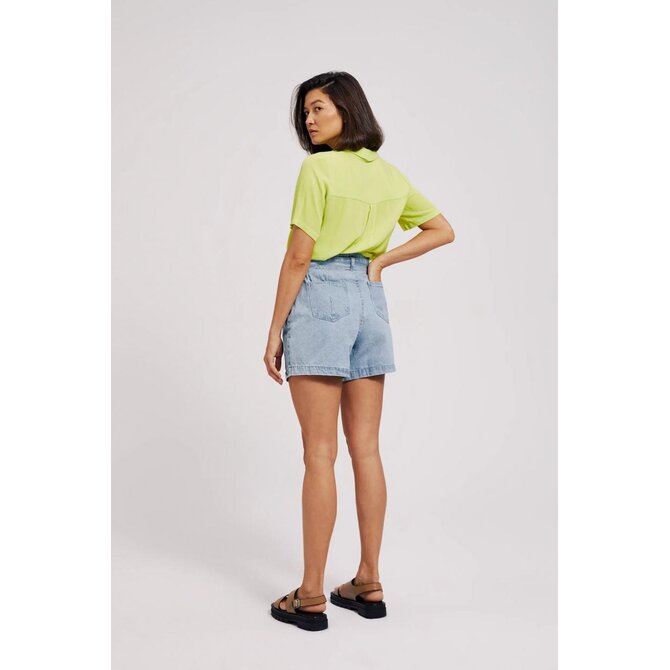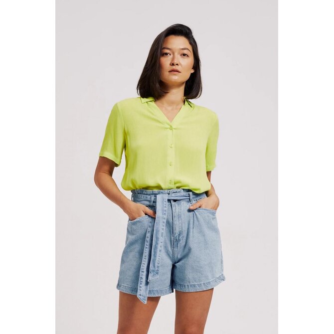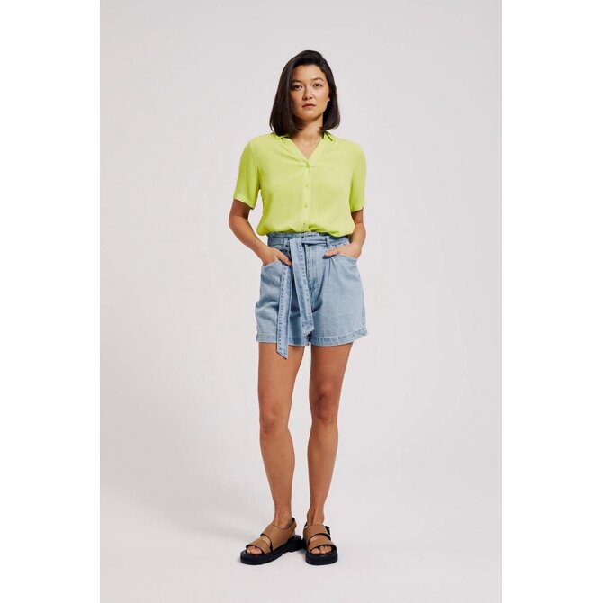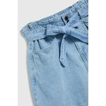 100% BAVLNA Džínové kraťasy Hladká a nevzorovaná tkanina činí kraťasy univerzálními a vhodnými pro různé styly. Navíc mají praktické kapsy, které vám umožní uložit nejpotřebnější věci. Tento model s vázáním a gumou v pase zaručuje perfektní padnutí k postavě a zdůrazňuje její přednosti. Díky délce do poloviny stehen jsou kraťasy vhodné jak pro každodenní nošení, tak i na pláž. Zip, knoflíky a šněrování jsou jemné detaily, které jim dodávají charakter a díky nimž vypadají módně a stylově. Tyto modré kraťasy jsou perfektní volbou pro různé příležitosti. Můžete si je vzít na procházku, schůzku s přáteli nebo na večerní rande. Perfektně se hodí jak k ležérnímu, tak k elegantnějšímu stylu. Skvěle se hodí k volným halenkám, tričku nebo crop topu. Dají se také kombinovat s lehkou, vzdušnou košilí nebo svetrem pro chladnější dny. Ať už si je oblečete jakkoli, naše modré kraťasy dodají vašemu vzhledu módní a ženský nádech.