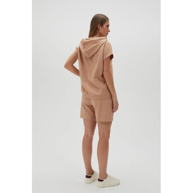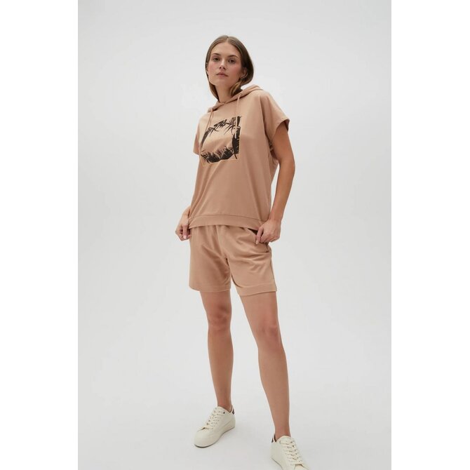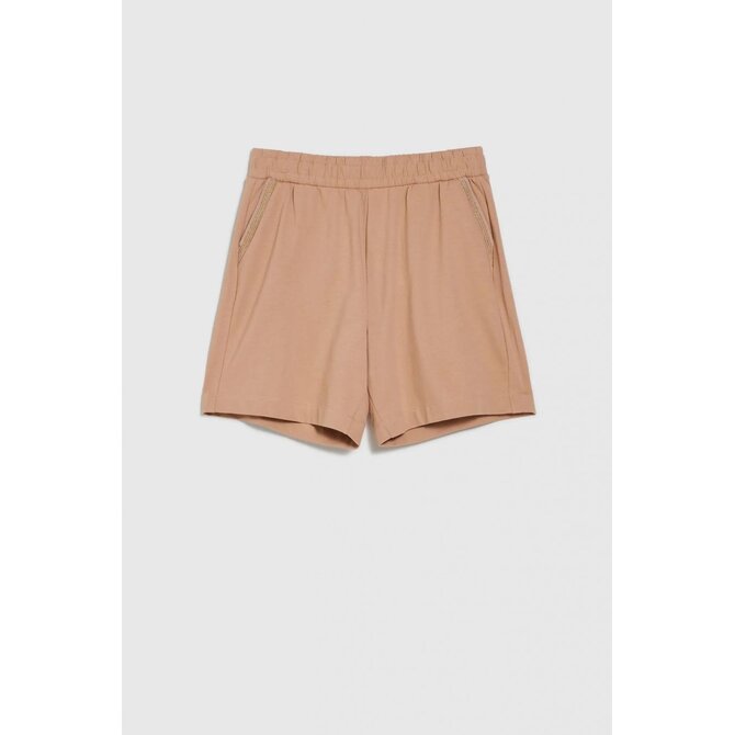 95% BAVLNA, 5% ELASTAN Dámské kraťasy v hnědé barvě jsou perfektní volbou pro každodenní nošení. Jsou vyrobeny z příjemné bavlny na dotek, která zaručuje pohodlí při nošení. Elastický pas zajišťuje perfektní padnutí a kapsy dodávají praktičnost. Délka, která sahá těsně nad kolena, je činí vhodnými jak na procházku, tak na pláž. Vysoký pas tvaruje siluetu a hladká textura dodává eleganci. Tyto obyčejné hnědé kraťasy, ideální pro nadcházející léto, se skvěle hodí jak na pláž, tak na každodenní procházky. Zkombinujte je s lehkým topem a sandály a vytvořte tak ležérní letní vzhled.