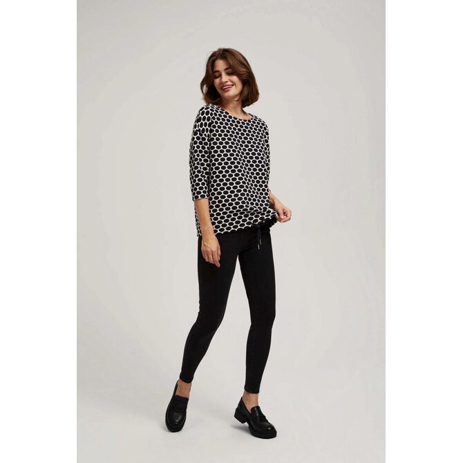 75% POLYESTER, 25% BAVLNA Dámská mikina v bílé barvě s tmavě modrými puntíky je perfektní volbou pro každou ženu, která se chce cítit jedinečně a stylově. Vyrobeno z vysoce kvalitního polyesteru, které zajišťuje nejen pohodlí při nošení, ale i odolnost výrobku. 3/4 rukávy dodávají mikině lehkost a eleganci, zatímco kulatý výstřih a svetr zajišťují pohodlné oblékání. Mikina má navíc praktické zavazování, které umožňuje její přizpůsobení individuálním preferencím. Skvělá volba pro každodenní použití, ale i pro mnoho dalších příležitostí. Ideální pro schůzky s přáteli, rande nebo návštěvy restaurace. Lze jej také kombinovat s elegantními sukněmi nebo kalhotami a vytvořit tak jedinečné a stylové sety. Bílo-tmavomodrá mikina s puntíky je spolehlivý kousek šatníku, který dodá charakter a kouzlo každému stylu. Buďte jedineční a vyberte si tuto mikinu, která podtrhne váš individuální styl a dodá vám sebevědomí.