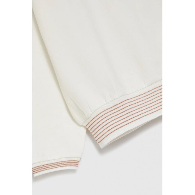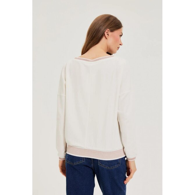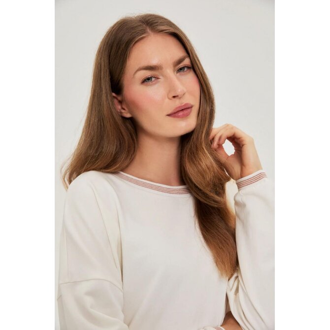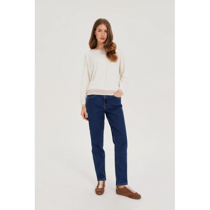 95% BAVLNA, 5% ELASTAN Tato dámská mikina v ecru barvě je perfektní volbou pro milovnice minimalistického stylu. Hladká, nevzorovaná textura zdůrazňuje všestrannost produktu, zatímco klasický kulatý výstřih a dlouhé rukávy zaručují pohodlí a volnost pohybu. Elastické manžety a lem zajišťují perfektní střih. Mikina je vyrobena z měkké bavlny s nádechem syntetických vláken, díky čemuž je materiál měkký, prodyšný a odolný. Navléká se přes hlavu, bez kapuce nebo zapínání, je ideální pro každodenní nošení. Tato krémová mikina je ideální na procházku, setkání s přáteli, do práce nebo na víkendový odpočinek. Perfektně se hodí ke klasickým džínům, látkovým kalhotám, plisované sukni nebo sportovním legínám. Vypadá skvěle pod sakem nebo lehkou bundou a vytváří stylový a moderní vzhled.