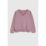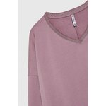 95% BAVLNA, 5% ELASTAN Tato dámská mikina v módním odstínu růžové se zlatými akcenty přitahuje pozornost svým minimalistickým, hladkým povrchem a decentním výstřihem do V. Dlouhé rukávy a elastické manžety zajišťují pohodlí a komfort po celý den. Střih bez kapuce s otevřenými zády umožňuje rychlé nazouvání a zdůrazňuje všestranný charakter mikiny. Je perfektní volbou pro každodenní nošení, schůzky s přáteli nebo relaxaci doma. Perfektně se hodí ke klasickým džínům, midi sukním a elegantním cigaretovým kalhotám. Skvěle se hodí k ležérním a lehce sportovním outfitům a dobře se hodí k teniskám, kotníkovým botám nebo balerínkám. Tato růžová dámská mikina s výstřihem do V zdůrazní váš individuální styl a dodá každému šatníku svěží nádech.