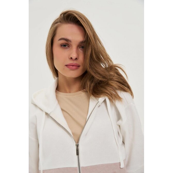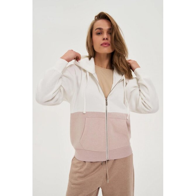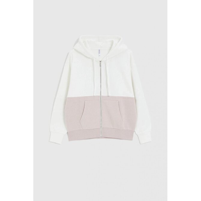 65% BAVLNA, 35% POLYESTER Tato dámská mikina s geometrickým vzorem kombinuje moderní styl a pohodlí. Zapínání na zip s praktickým zipem usnadňuje oblékání, zatímco kapuce a stahovací šňůrky chrání před chladem a zajišťují pohodlný střih. Kontrastní ecru detaily dodávají mikině jedinečný nádech a módní vzhled. Praktické kapsy a zavazování na kapuci zdůrazňují funkčnost mikiny, zatímco dlouhé rukávy zaručují pohodlí i v chladnějších dnech. Mikina je vyrobena z měkké bavlny s přídavkem syntetických materiálů, zvyšuje odolnost a zachovává příjemný pocit na nošení. Je ideální volbou pro každodenní výlety, procházky, outdoorové aktivity nebo víkendová setkání s přáteli. Hodí se ke klasickým džínám, legínám a sportovním kalhotám. Hodí se k teniskám, sportovním botám a ležérním kotníkovým botám a vytváří tak módní a pohodlný vzhled pro mnoho příležitostí. Tato dámská mikina s kapucí, zipem a geometrickým vzorem je nezbytnou součástí šatníku každého přechodného období.