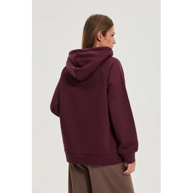 65% BAVLNA, 35% POLYESTER Tato dámská vínová mikina se vyznačuje hladkým, jednotným a nevzorovaným povrchem, který zdůrazňuje moderní minimalistický styl. Pečlivě vybraná bavlna zaručuje měkkost a prodyšnost, což zajišťuje celodenní pohodlí. Praktická kapuce s nastavitelnou šňůrkou chrání před chladem a elastické manžety a lem zajišťují perfektní střih. Ideální na procházku, setkání s přáteli nebo víkendový výlet. Perfektně se hodí k džínům, legínám nebo sportovní sukni a vytvoří tak pohodlný a módní outfit pro každou neformální příležitost. Skvěle se hodí k teniskám, kotníkovým botám nebo sportovní obuvi a podtrhne tak ležérní městský vzhled.