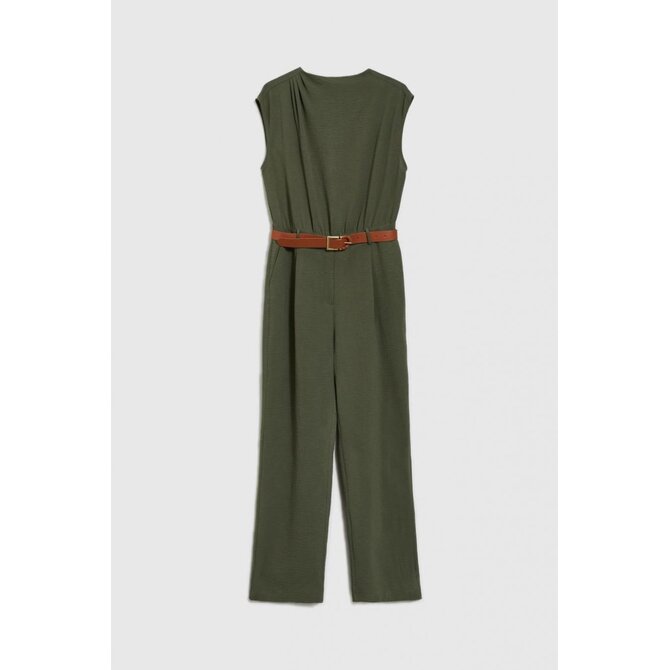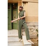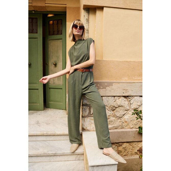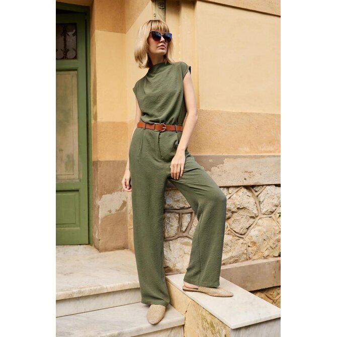 100% POLYESTER Overal olivové barvy, bez vzoru, vyrobený z hladkého materiálu. Má pásek pro zdůraznění pasu. Tento model vyzařuje půvab a eleganci, ideální jak pro zvláštní příležitosti, tak pro každodenní nošení. Hodí se jak do práce, tak i na různé zvláštní příležitosti. Perfektně se hodí k doplňkům, jako jsou vysoké podpatky nebo elegantní sandály.