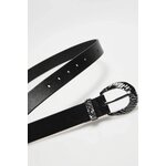 100% POLYURETAN. Tento černý dámský pásek vyrobený z ekokůže přitahuje pozornost svým minimalistickým designem a elegantním provedením. Jeho hladký povrch a absence vzoru z něj činí perfektní doplněk moderního stylu, zatímco ozdobná stříbrná přezka a poutko dodávají každému outfitu jedinečný nádech. Tento pásek je ideální jak pro formální příležitosti, tak pro každodenní nošení – do práce, na rande nebo na večerní vycházku. Perfektně se hodí ke klasickým džínům, elegantním kalhotám, jednoduchým šatům a sukním. Je to skvělá volba pro ženy, které si cení decentní elegance a všestranných doplňků šatníku.