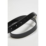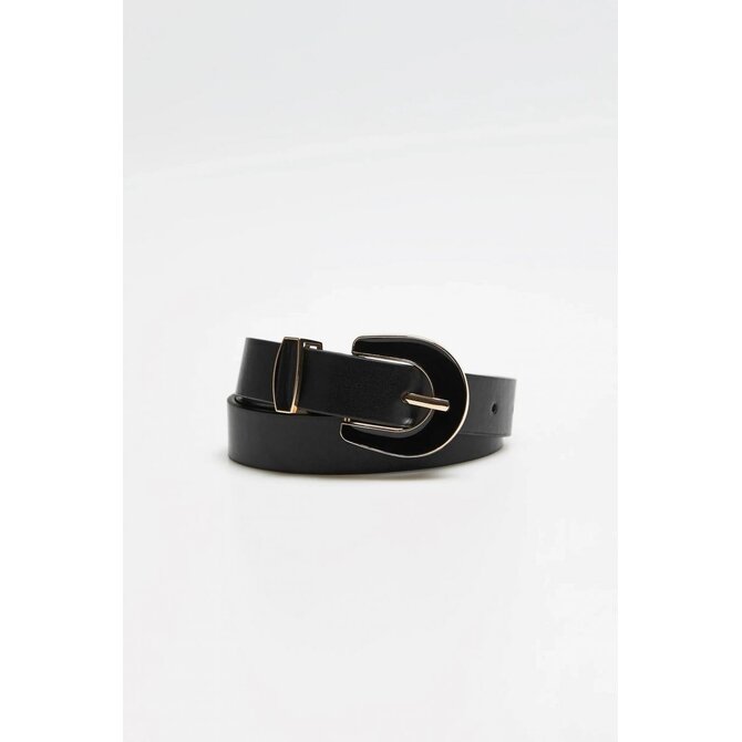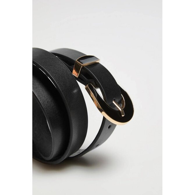 100% POLYURETAN Elegantní dámský pásek černé barvy, bez vzoru, vyrobený z hladkého polyuretanu. Má ozdobnou přezku zlaté barvy, která dodává šik a třídu. Tento pás je ideální pro večerní výlety, obchodní jednání nebo elegantní večírky. Dokonale se hodí k šatům, sukním a kalhotám a dodá vašemu stylu eleganci a sofistikovanost. Díky svému univerzálnímu designu bude dokonalým doplňkem šatníku každé ženy.