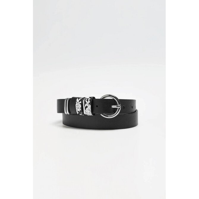100% POLYURETAN Elegantní černý pásek skvěle doplní jakýkoli styling. Pásek je vyroben z vysoce kvalitního polyuretanu, materiálu imitujícího efekt hadí kůže, díky čemuž působí velmi elegantně. Stříbrné kování mu dodává moderní a stylový vzhled.