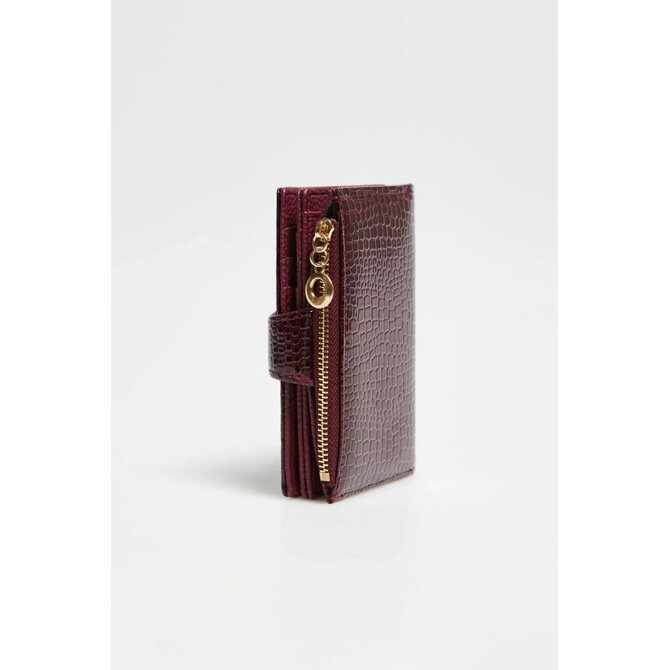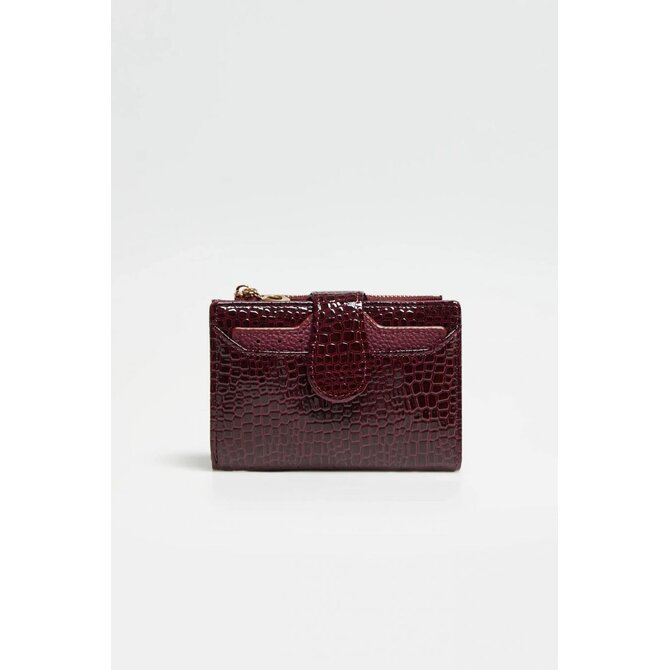 100% POLYURETAN, PODŠÍVKA: 100% POLYESTER. Tato vínová dámská peněženka střední velikosti přitahuje pozornost lakovanou koženkou a módním zvířecím potiskem. Zlaté detaily dodávají eleganci a zdůrazňují jedinečný charakter doplňku. Funkční interiér nabízí samostatnou přihrádku na mince a přihrádku na fotografie. Odolný polyuretan zajišťuje odolnost pro každodenní použití a kombinuje styl s praktičností.