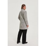 71% POLYESTER 7% VISKÓZA 12% AKRYL 5% POLYAMID 3% BAVLNA 2% VLNA, PODŠÍVKA: 100% POLYESTER Tento šedý kabát s motivem rybí kosti je synonymem pro nadčasový styl a moderní eleganci. Dvouřadý střih s klasickým límcem a výraznými knoflíky zdůrazňuje jeho módní charakter, zatímco délka do poloviny stehen zajišťuje pohodlí v chladnějších dnech. Praktické kapsy umožňují uschovat si nezbytnosti, zatímco dlouhé rukávy a podšívka zajišťují tepelný komfort. Odolný polyesterový svrchní materiál zaručuje odolnost při každodenním nošení, zatímco pečlivě vybraná podšívka zvyšuje pohodlí. Perfektní volba do práce, na schůzky s přáteli nebo elegantní oslavy v přechodném období.