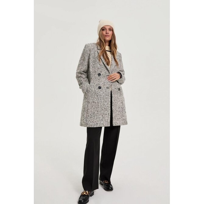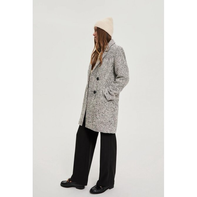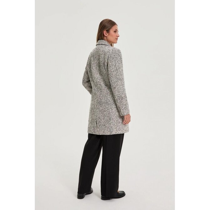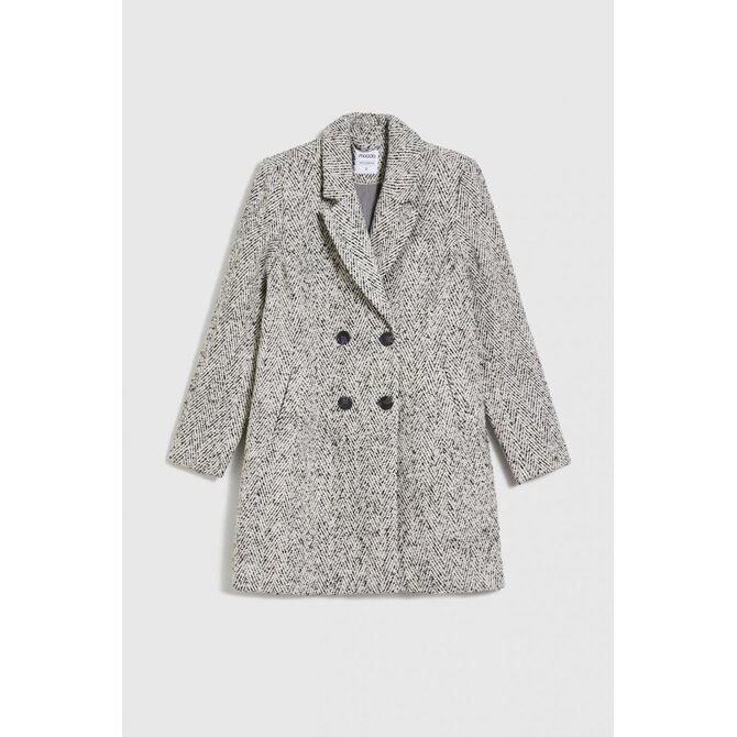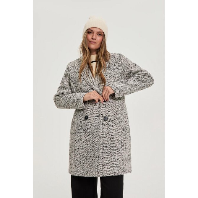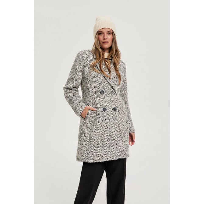 Šedý kabát se vzorem rybí kosti