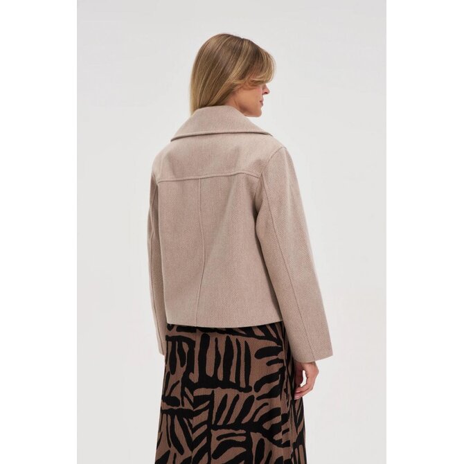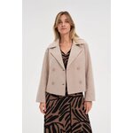 100% POLYESTER, PODŠÍVKA: 100% POLYESTER Tato béžová dámská dvouřadá bunda zaujme svým módním střihem a výraznými pruhy, které dodávají stylu jedinečný charakter. Volný střih a délka po boky zajišťují pohodlí a volnost pohybu, zatímco dlouhé rukávy účinně chrání před chladem v přechodných ročních obdobích. Výrazný límec a klasické knoflíky dokonale podtrhují styl motorkářské bundy a dodávají každodennímu oblečení nádech elegance a modernosti. Praktické kapsy umožňují pohodlné uložení drobností. Bunda je vyrobena z polyesterové kabátoviny a je pro pohodlí podšitá. Ideální volba pro městské schůzky, večerní výlety nebo každodenní aktivity na podzim a na jaře. Perfektně se hodí k úzkým džínům, látkovým kalhotám, splývavým šatům a kotníkovým botám nebo teniskám.