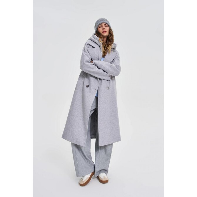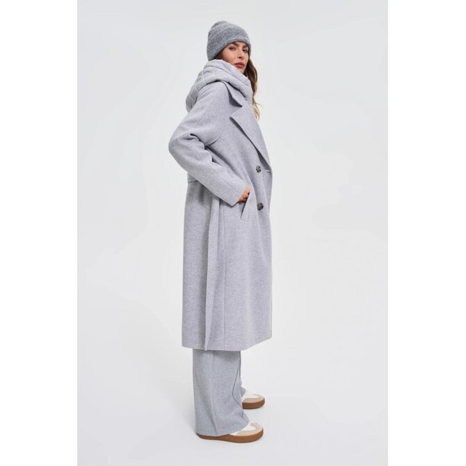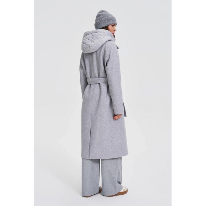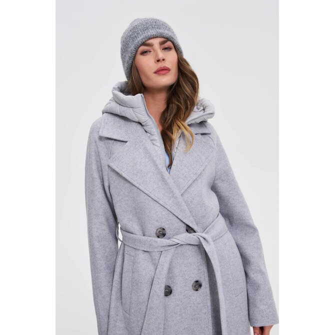 Dlouhý kabát s odnímatelnou kapucí, šedý