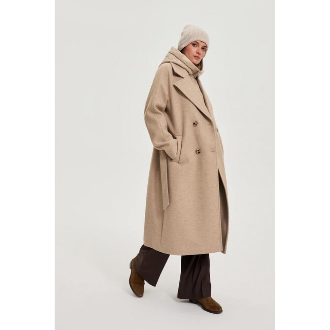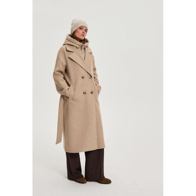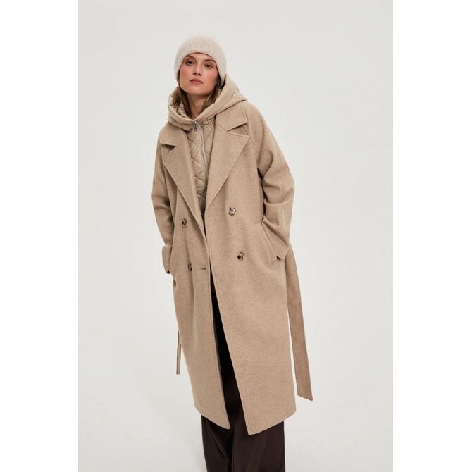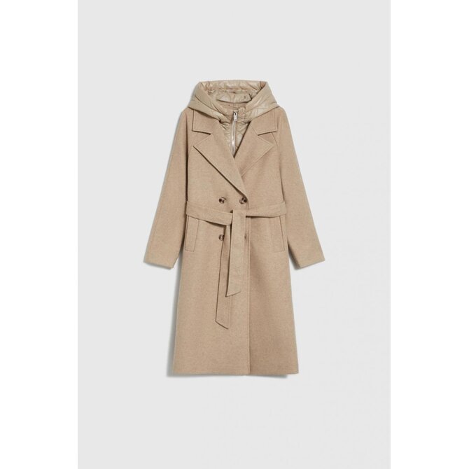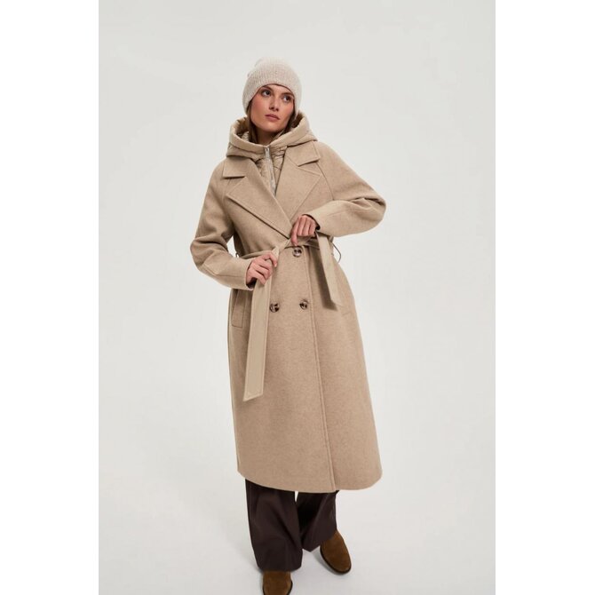 Dlouhý kabát s odnímatelnou kapucí, béžový
