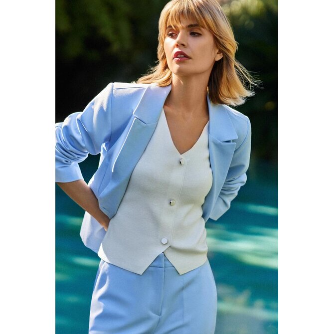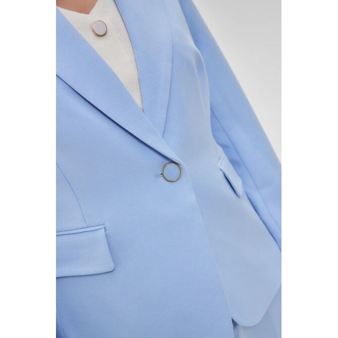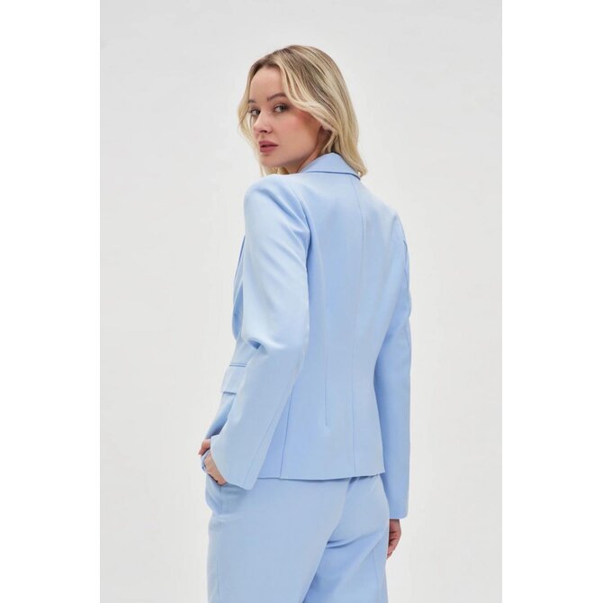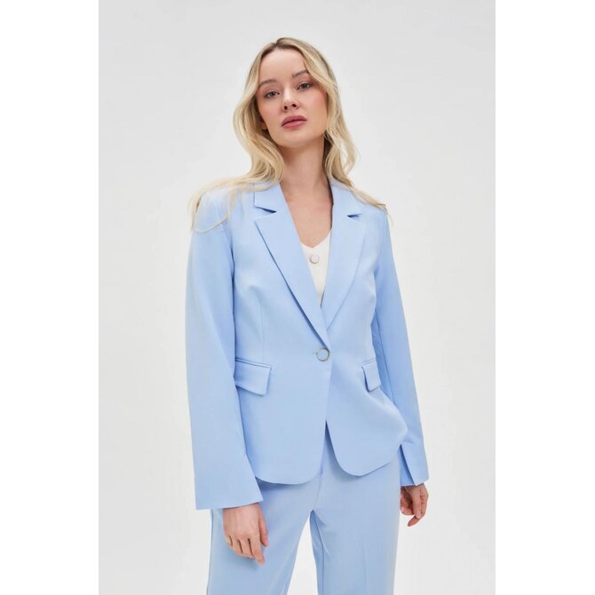 VNĚJŠÍ VRSTVA: 78 % POLYESTER, 18 % VISKÓZA, 4 % ELASTAN.PODŠÍVKA: 100 % POLYESTER. Dámské modré sako je perfektní volbou pro ženy, které si cení elegance a stylu. Bez vzoru, hladký materiál je univerzální, ideální pro každodenní i speciální příležitosti. Jednořadé provedení s podšívkou, dlouhé rukávy a praktické kapsy zajišťují pohodlí a funkčnost. Knoflíky dodávají nádech třídy a zdůrazňují ženskou siluetu. Bunda je vyrobena z vysoce kvalitního materiálu, který zajišťuje pohodlí a odolnost.