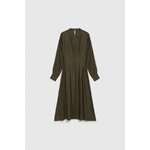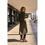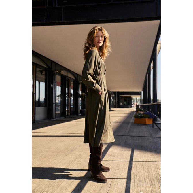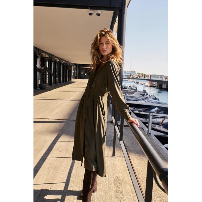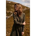 100% VISKÓZA Tyto olivově zbarvené šaty s košilovým pasem jsou perfektní volbou pro ženy, které oceňují klasický styl s nádechem elegance. Hladké, nevzorované a vyrobené z prodyšné viskózy nabízejí celodenní pohodlí. Přiléhavý lichoběžníkový střih lichotí postavě, zatímco délka do poloviny lýtek dodává šatům nádech elegance. Praktické kapsy a výstřih do V dodávají šatům lehký a vzdušný vzhled. Knoflíky po celé délce a elegantní manžety zdůrazňují nadčasový charakter šatů. Jsou ideální pro zvláštní příležitosti, do práce nebo na každodenní nošení a perfektně se hodí ke klasickým podpatkům, kotníkovým botám, minimalistickému kabátu nebo kožené motorkářské bundě. Vypadají skvěle s jednoduchou kabelkou a jemnými šperky a vytvářejí ucelený a módní vzhled pro každé roční období.