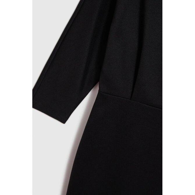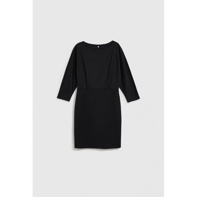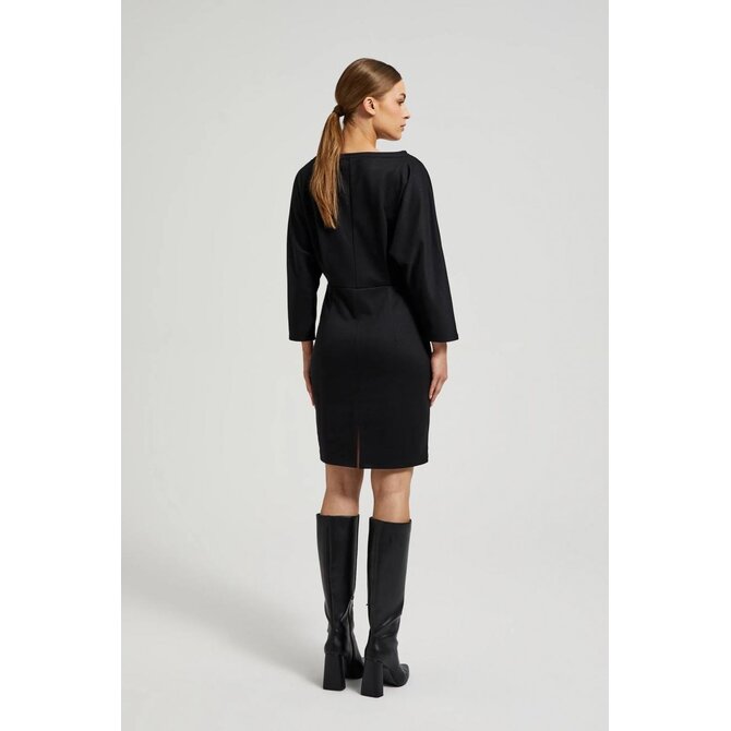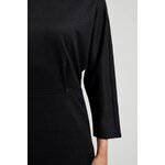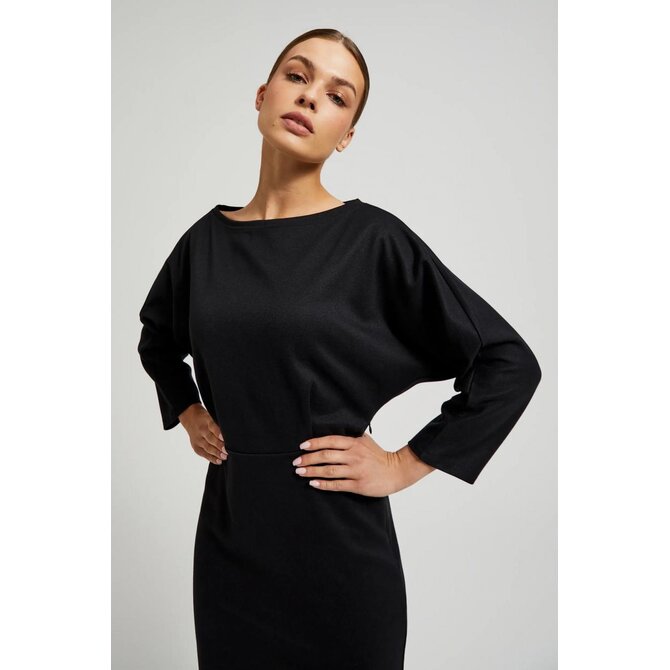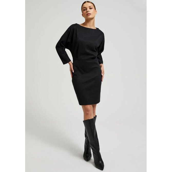 Šaty, bez vzoru, z hladkého materiálu. Tento model se vyznačuje elegantním střihem, který zvýrazňuje pas a dodává na třídě. Volány dodávají šatům jedinečný charakter, díky čemuž jsou ideální pro zvláštní příležitosti a do práce. Díky svému klasickému vzhledu se skvěle hodí i pro každodenní použití. Šaty mají lodičkový výstřih a jsou po kolena. Tento model šatů bude perfektní volbou pro mnoho různých příležitostí. Můžete jej nosit do práce, na setkání s přáteli nebo na rande. Skvěle se bude hodit jak k elegantním vysokým podpatkům, tak k neformálním botám. Šaty bez vzoru budou díky svému univerzálnímu designu skvělým doplňkem vašeho šatníku.