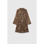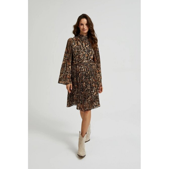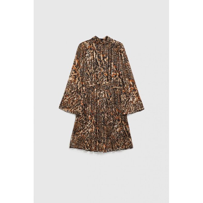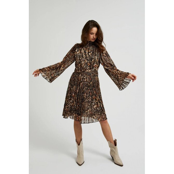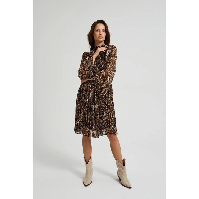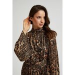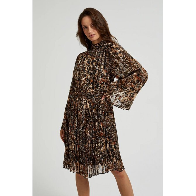 95% POLYESTER, 5% METALIZOVANÁ NIT Šaty v černé, béžové a hnědé barvě jsou perfektní volbou pro každou ženu. Vyrobeno z polyesteru s podšívkou, má rozšířené rukávy, nařasení a řasení, díky čemuž působí velmi elegantně. Šaty jsou vhodné pro speciální příležitosti i do práce nebo na každý den. Skvěle bude ladit jak s kozačkami na podpatku, tak s teniskami. Jedná se o produkt, který dodá kouzlo a třídu každému stylingu. Ideální pro obchodní jednání, rande nebo večer.