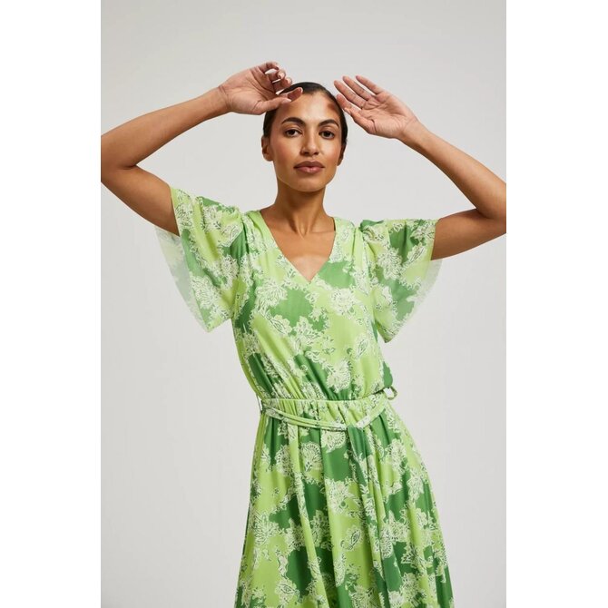 95% POLYESTER, 5% ELASTAN Zelené šaty s rostlinným motivem zdobené květinami, ideální pro každou příležitost. Vyrobeno z vysoce kvalitního polyesteru s podšívkou pro pohodlné nošení. Volán, rozšířené rukávy, volány a elastický pas dělají šaty elegantními. Přizpůsobený a rozšířený ve tvaru lichoběžníku zdůrazňuje ženskou postavu. Dodatečně zdobené popruhem, který lze libovolně nastavit. Perfektní jak pro každodenní použití, tak pro práci. Výstřih do V dodává šatům šarm a délka do poloviny lýtek je činí pohodlnými a módními. Ideální nabídka pro ženy, které oceňují pohodlí a eleganci. Šaty s rostlinným motivem se skvěle hodí pro výjimečné příležitosti i každý den. Skvěle bude vypadat v kombinaci se sandály na vysokém podpatku a jemnými doplňky a vytvoří elegantní a stylový vzhled.