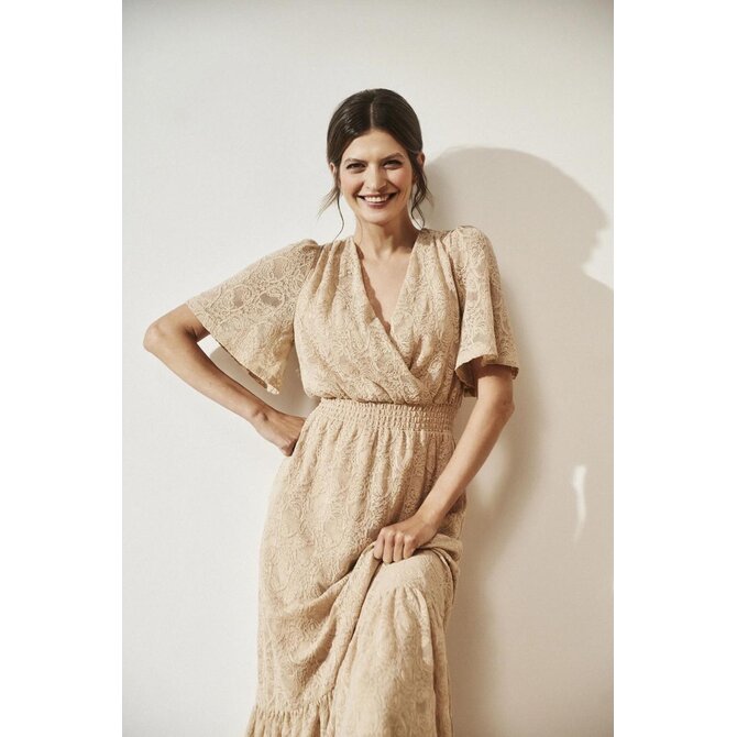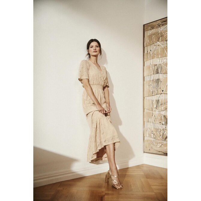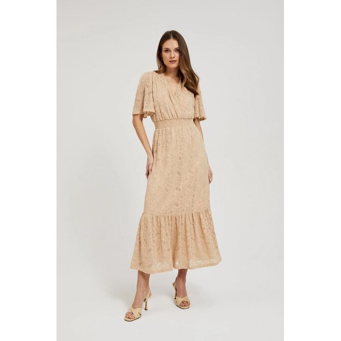 Béžové krajkové midi šaty